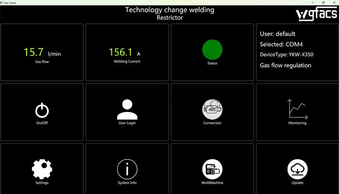 WGFACS節氣裝置之所以能精準適配庫卡弧焊機器人的二八混合氣體作業,核心在于其針對混合氣體特性與庫卡控制系統的雙重定制開發。電流大則多供氣體電流小則少供氣體的調節邏輯,并非簡單的參數跟隨,而是充分考慮了二八混合氣體的組分特性與保護機理。裝置內置的專屬適配模塊,可直接接入庫卡弧焊機器人的控制系統總線,實時捕捉焊接電流、焊接速度、焊槍擺動幅度等核心作業參數,結合二八混合氣體在不同電流工況下的保護閾值,通過內置智能算法快速運算出最優供給流量,再由高精度流量調節單元完成實時調控。這種深度協同的調節方式,讓二八混合氣體供給始終貼合庫卡機器人的作業節奏,避免了固定流量模式下的資源浪費與保護不足問題。