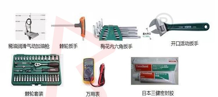 工具:加油槍、棘輪扳手、梅花內(nèi)六角、開口活動扳手、棘輪套裝、萬用表、日本三健密封膠