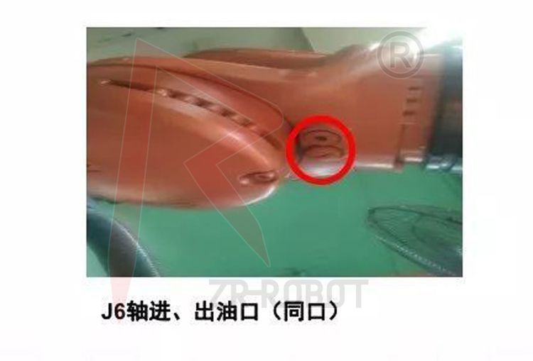 利用M8內(nèi)六角,將加油口螺栓松開,排油完畢后,將六軸旋轉(zhuǎn)180度,進行加油。