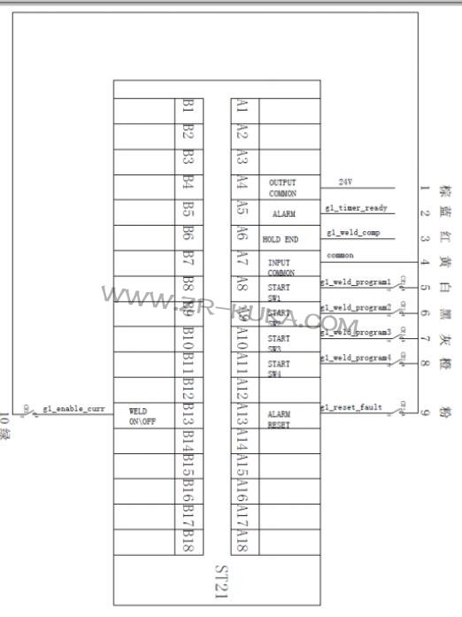 2.2 焊接控制器接線: ST21(小原)系列是工頻焊接控制器, SIV21(小原)系列是中頻焊接控制器,兩種控制器的接法不一樣,如圖6.1 為工頻接法,圖6.2 為中頻接法。移除A12 和A14 的短接片。